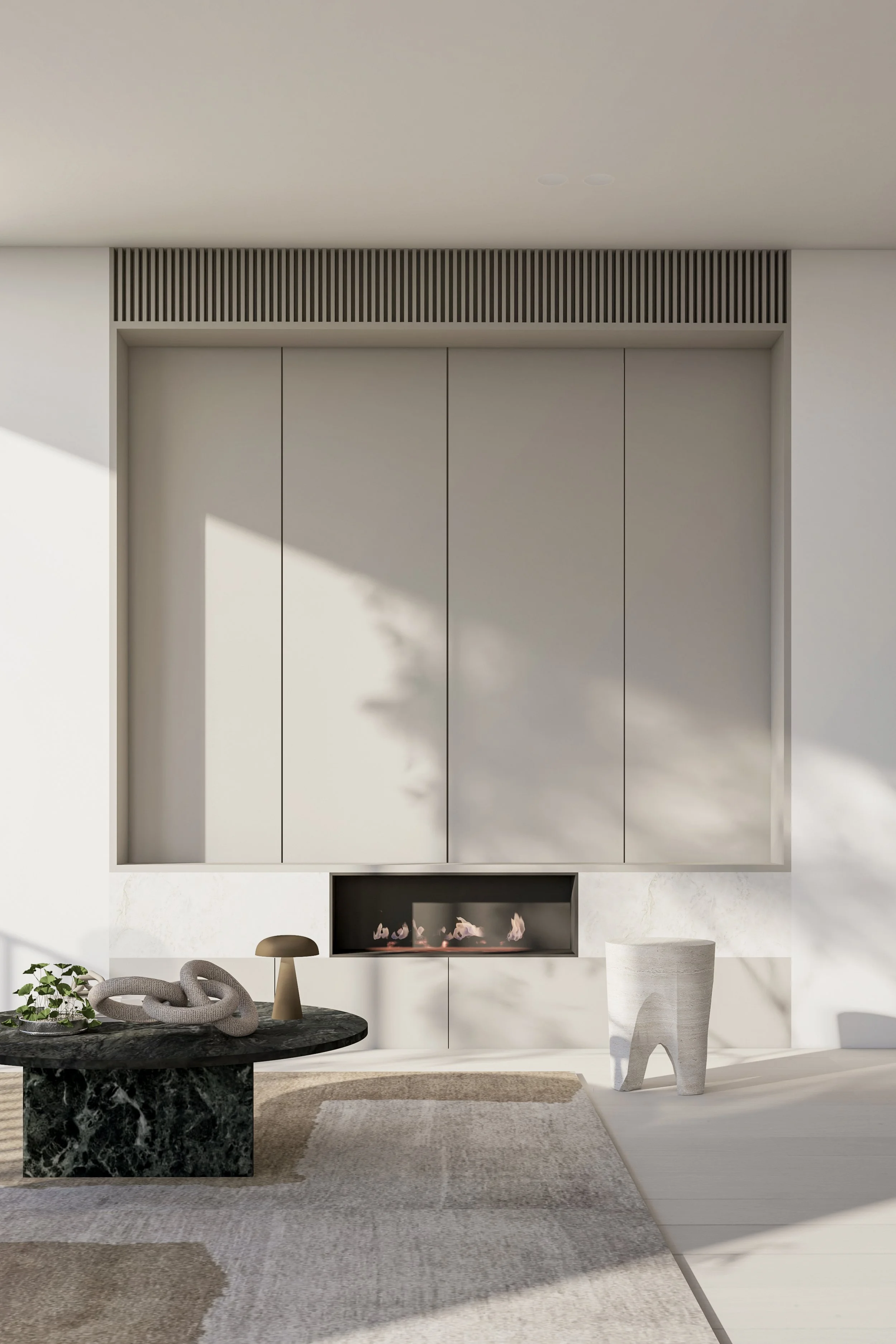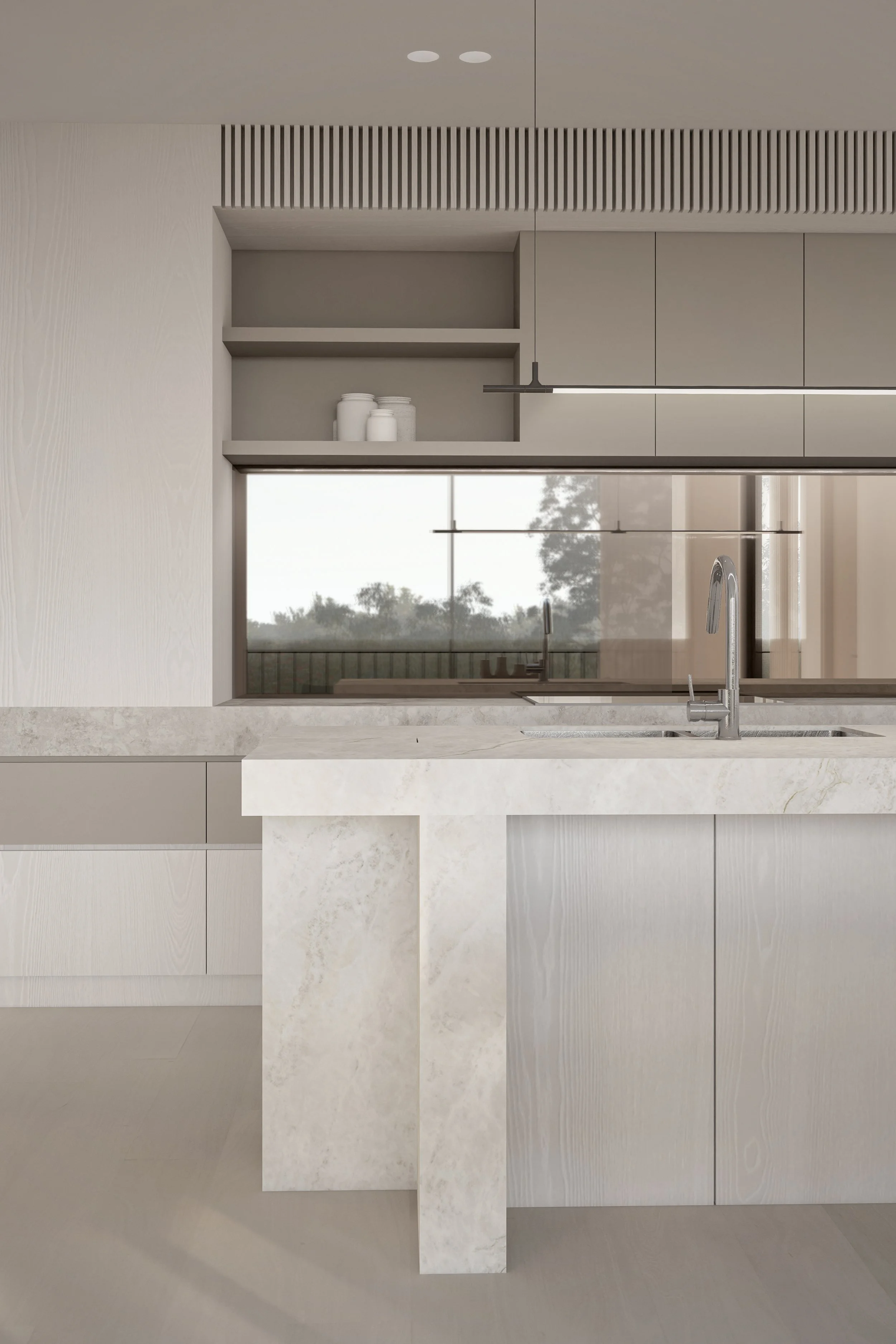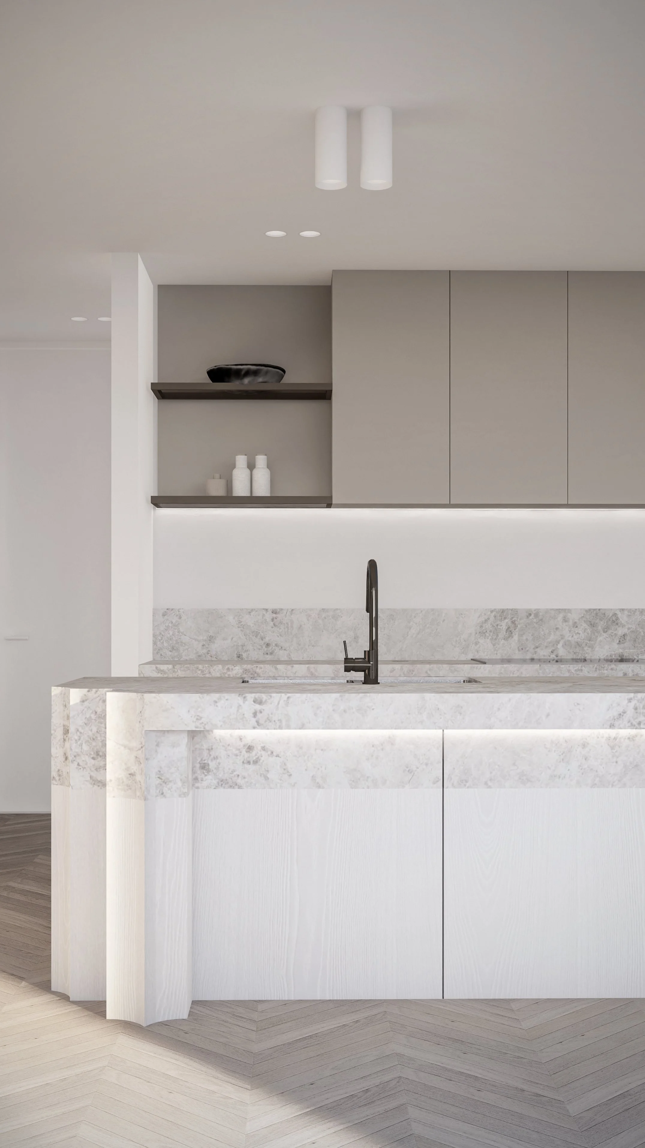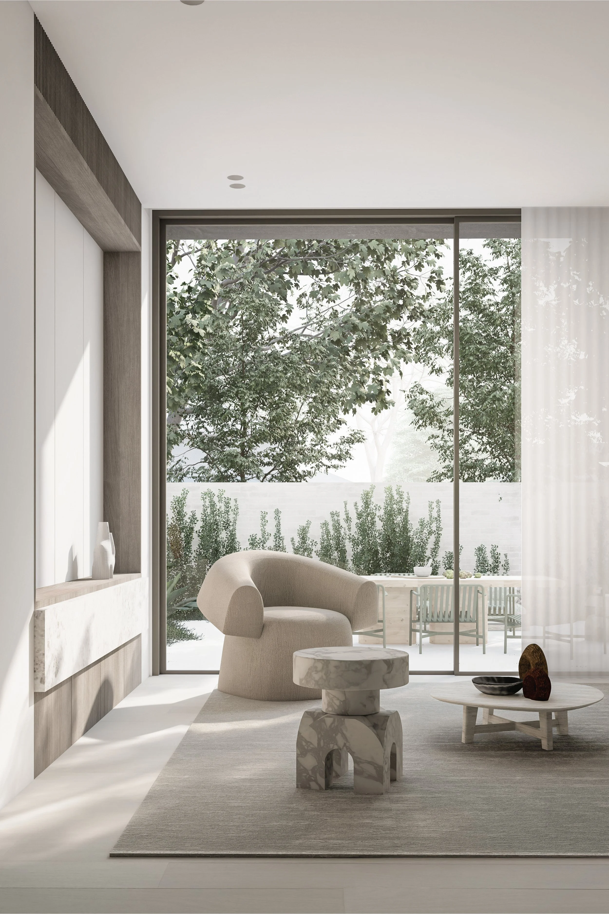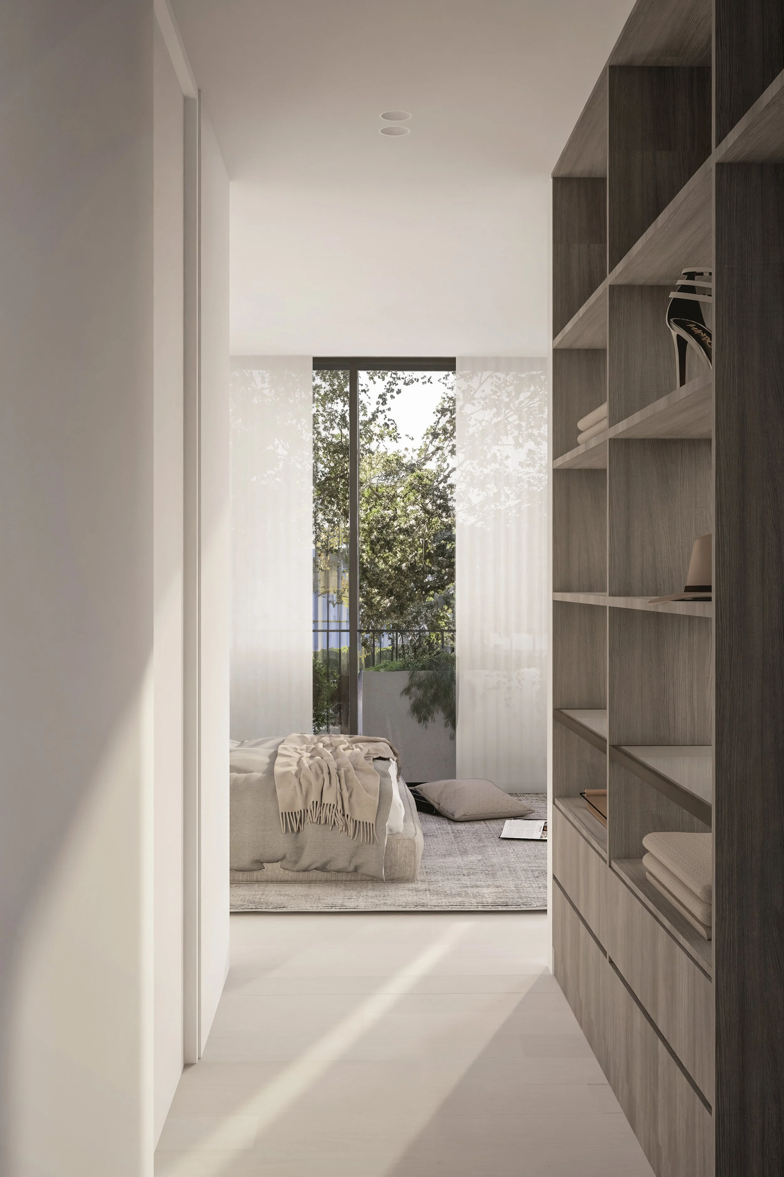 Central to its design is a beautiful green communal garden, fostering a sense of community and linking residents to the adjacent park. The sophisticated material palette of grey brick and bronze to create a timeless facade. The rhythmic layering of these materials is punctuated by extensive glazing, allowing light and nature to flow into the interiors. Lush greenery cascades down layered balconies, softening the building's verticality and creating a living facade.