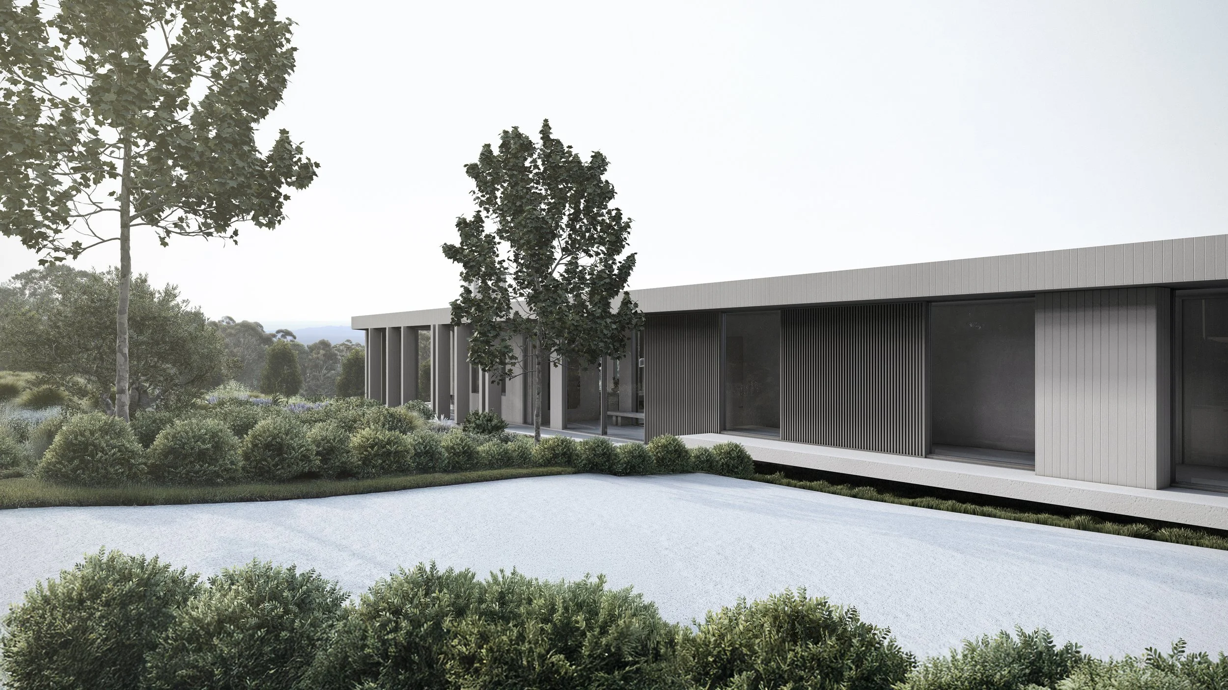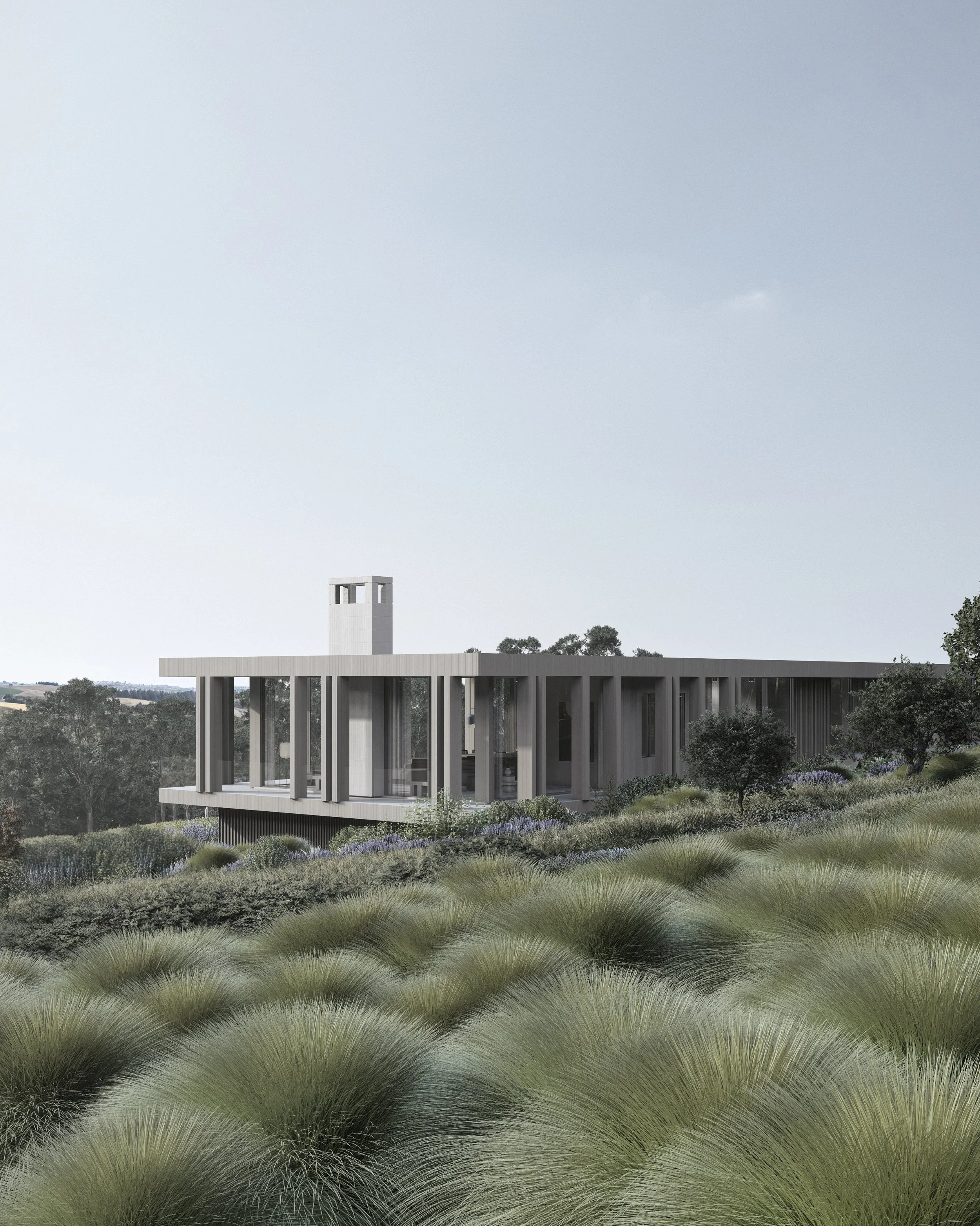 A modern farmhouse offering panoramic views of the countryside. Designed to blend contemporary living with natural beauty, the home captures the essence of rural serenity while incorporating sustainable and thoughtful design elements.