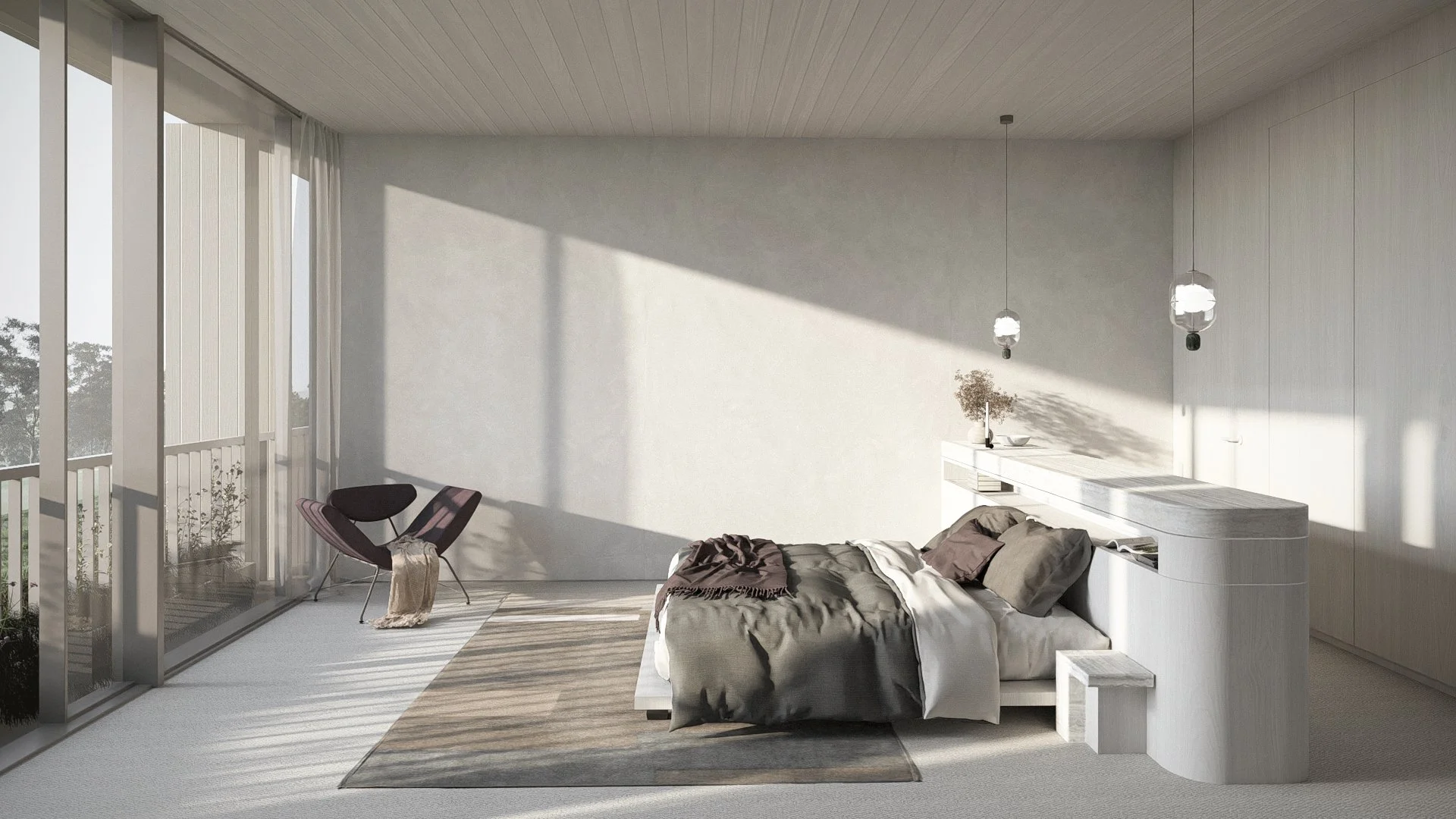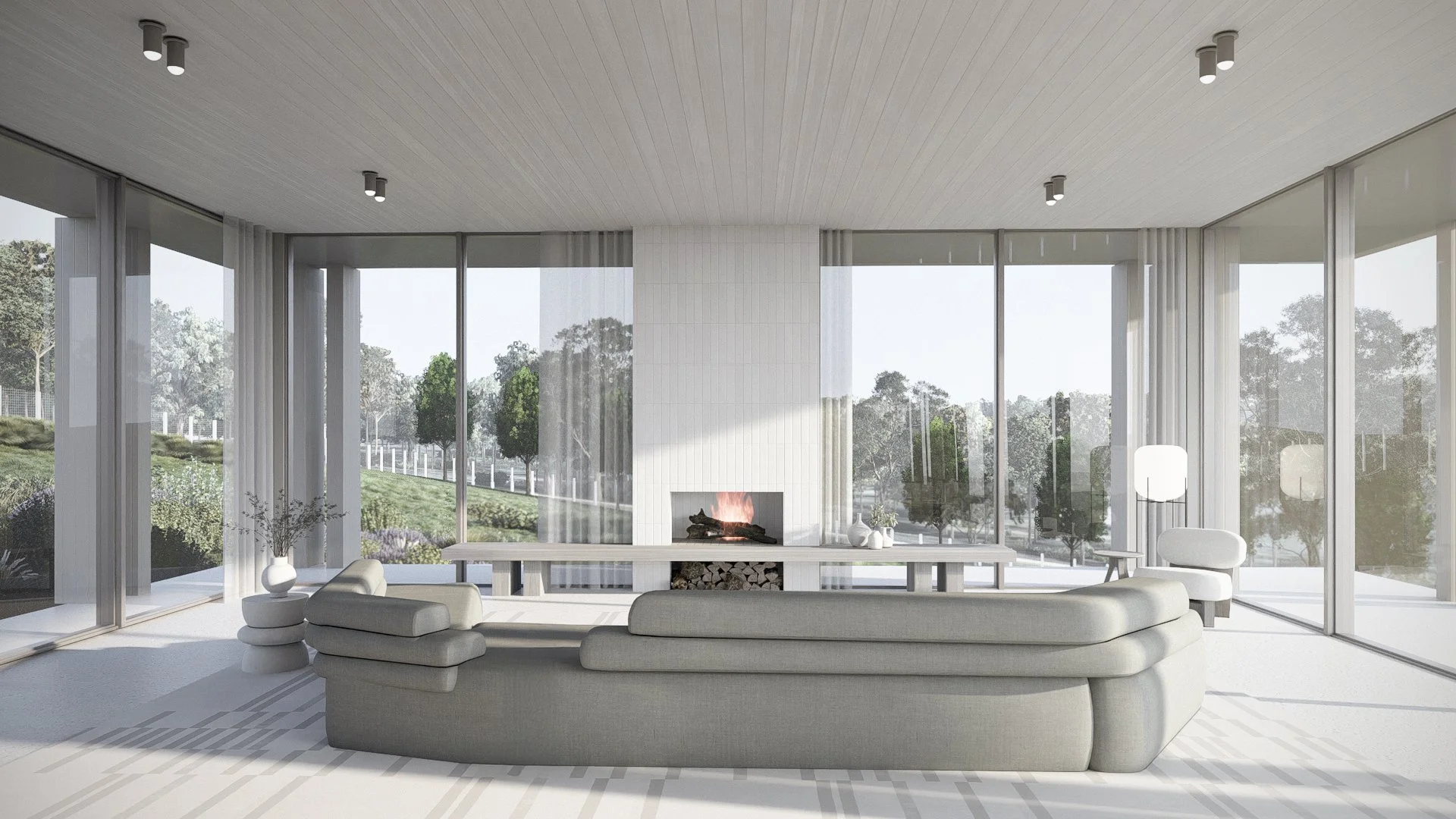 The living area in Sea Mist is a warm, light-filled space designed to capture breathtaking countryside views. Featuring large windows, natural materials, and an open-plan layout, it seamlessly connects with the outdoors while offering comfort and functionality.